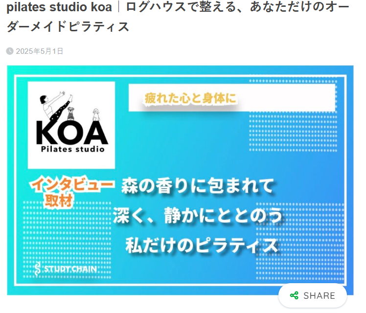 pilates studio koaの魅力を余すことなく伝えていただいているとてもいい記事を作成していただいたので、是非確認してみてください!
